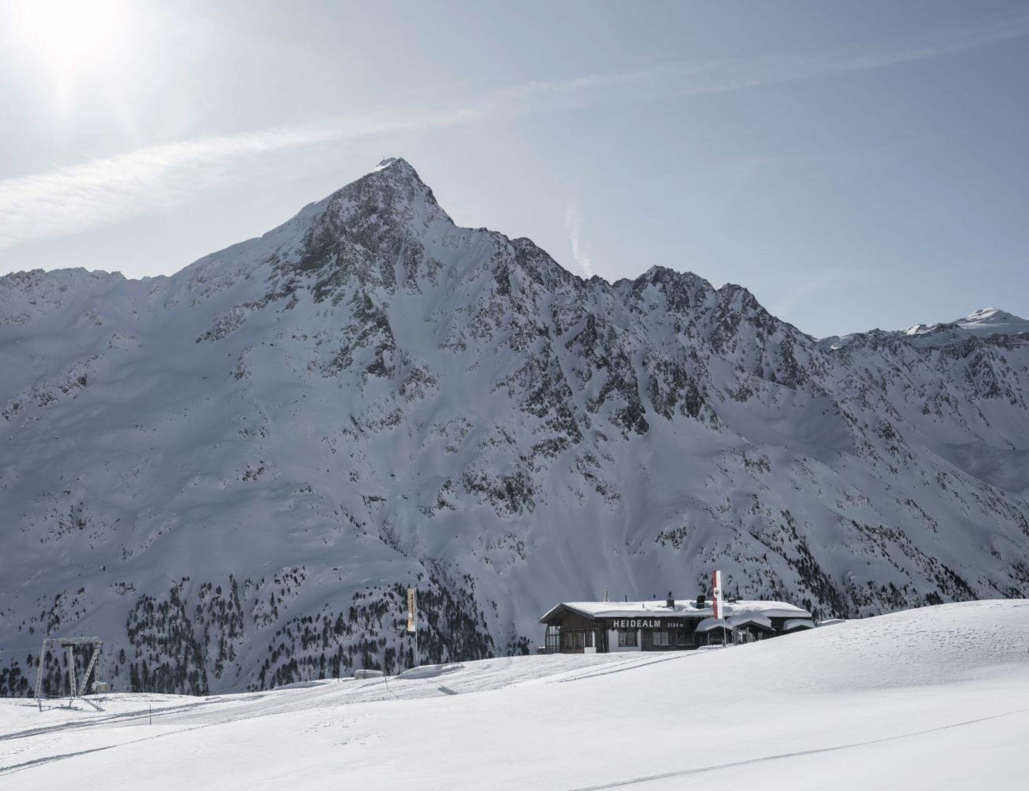 Neue im "Alt-Tiroler-Stil" erbaute Schi- und Berghütte gelegen auf einem Sonnenplateau im Gaislachgebiet. Herrliche Aussicht ins Ventertal. Gemütlichkeit in uriger Atmosphäre. Kinderspielplatz. Feierlichkeiten aller Art. Gutbürgerliche Kost - teilweise aus eigener Landwirtschaft. - Die sonnigste Hütte der Region - Im Alt-Tiroler Stil gehaltene Schi- und Berghütte mit Bedienung - Direkt an der Heidebahn - Piste 2 - Große Sonnenterrasse mit Liegestühlen - Gutbürgerliche Kost - teilweise aus eigener Landwirtschaft Almzeit Thema: Aussichtszeit - auf 2.130 m durch das riesengroße, hölzerne Fernrohr schauen.