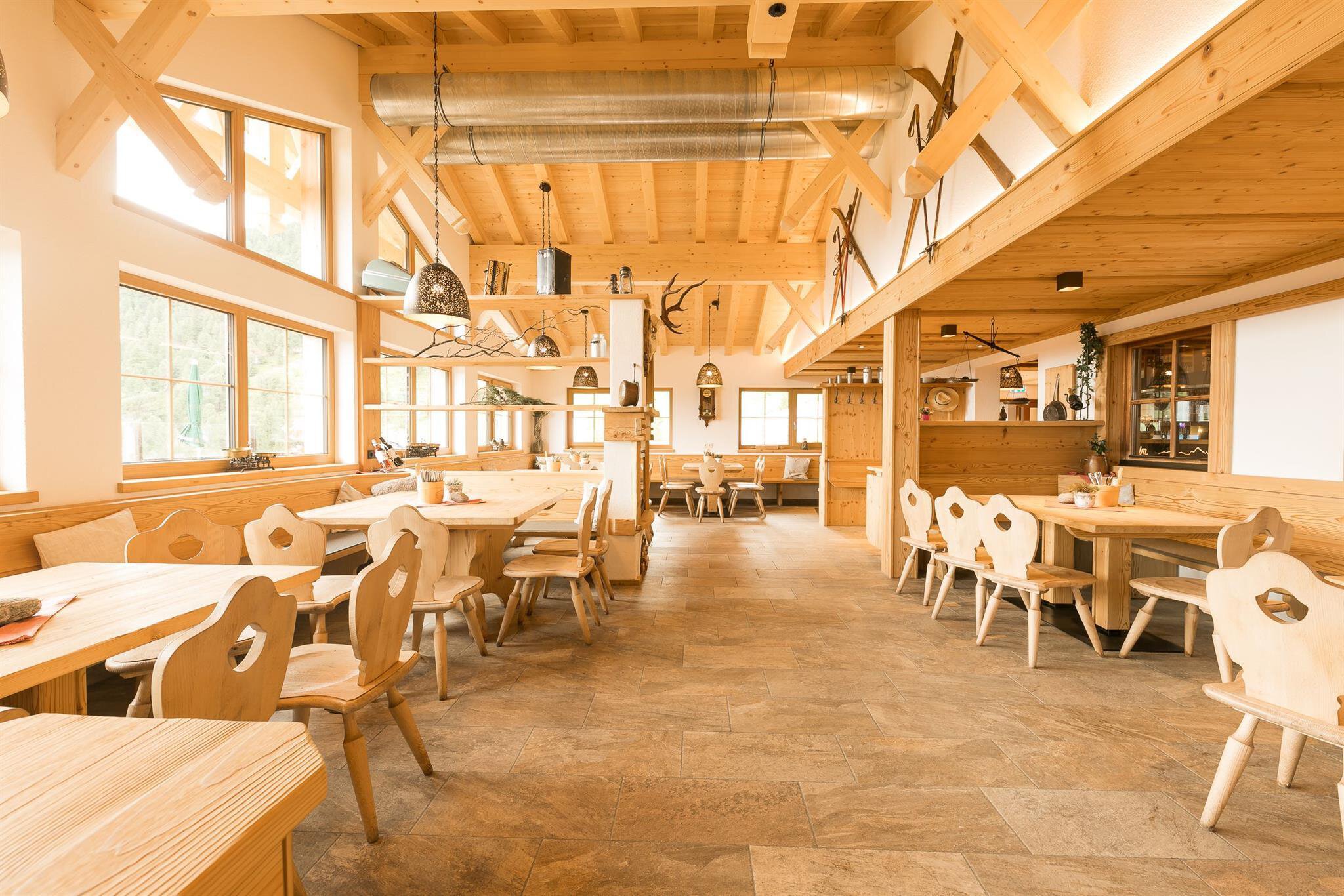 Gemütliche Hütte mit "gschmackig" traditioneller Tiroler Küche und manch besonderen moderne Speisen. Bei Kindergerichten gibt es zusätzlich eine kleine Überraschung. Die neue Gaststube bietet einen besonderen Platz um die Zeit in den Bergen genießen zu können.