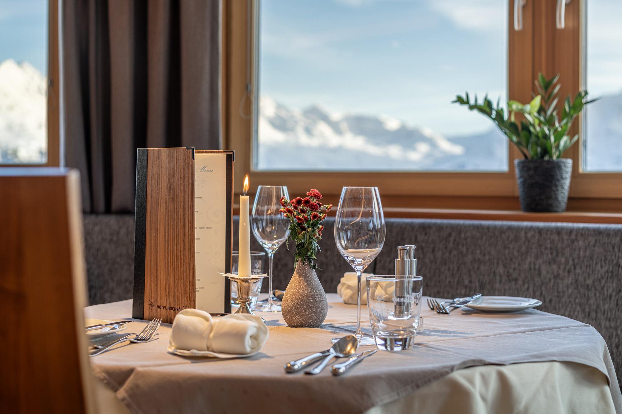 „The Top of Sölden" – nah am Himmel, tief im Herzen – seit 1933. Unser familiengeführtes Hotel liegt direkt an der Skipiste in einem der schönsten und bekanntesten Skigebiete der Alpen. Während andere noch auf dem Weg zum Skilift sind oder auf den Skibus warten, haben Sie bei uns schon die ersten Abfahrten genossen. In unserer Wellnessoase können Sie sich zurücklehnen und es sich gutgehen lassen. Genießen Sie den Ausblick und nehmen Sie sich Zeit für sich – Sie haben es sich verdient! Die bodenständige Küche mit österreichischen Spezialitäten und raffinierten Kreationen macht das Restaurant im Hotel Hochsölden besonders attraktiv. Die familiäre und ungekünstelte Atmosphäre betont die Herzlichkeit und Tradition, die von allen Mitarbeitern gelebt werden. Unser Küchenchef zaubert täglich genüssliche Gerichte mit regionalen Produkten, um die Umwelt zu schonen. Die passende Weinberatung unserer Mitarbeiter rundet das Gourmeterlebnis ab.