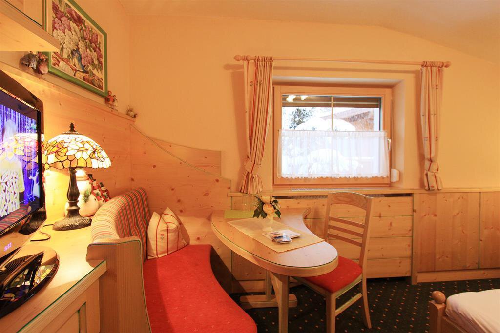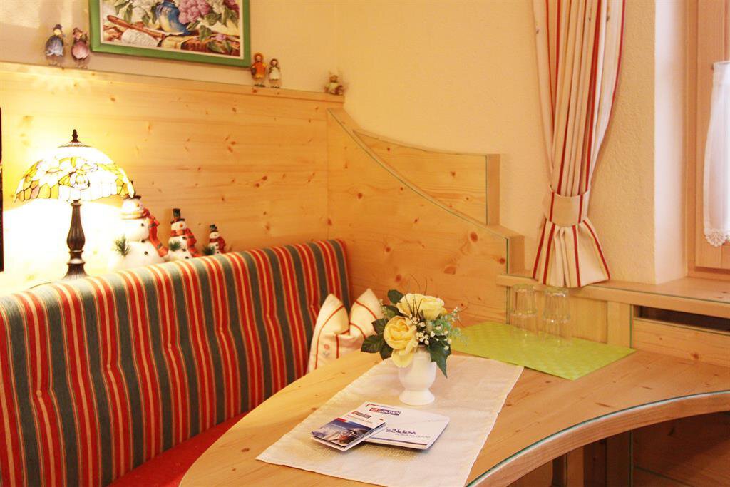 Gemütliche, familiengeführte Frühstückspension im Tiroler Stil. Zentral gelegen und doch ruhig. Direkt am Skihang. Abfahrten vom und bis zum Haus. Die Schischule befindet sich in der Nähe. Zentrums-Shuttle in das Dorfzentrum nur 5 Gehminuten vom Haus entfernt. Mehrere Restaurants in naher Umgebung. Am Morgen bieten wir ein großes Früstücksbuffet und die Wirtin verwöhnt Sie mit heißen Getränken. Aufenthaltsraum, neu errichtete Sonnenterrasse sowie Sauna/Dampfbad mit Ruhebereich und Duschen vorhanden.