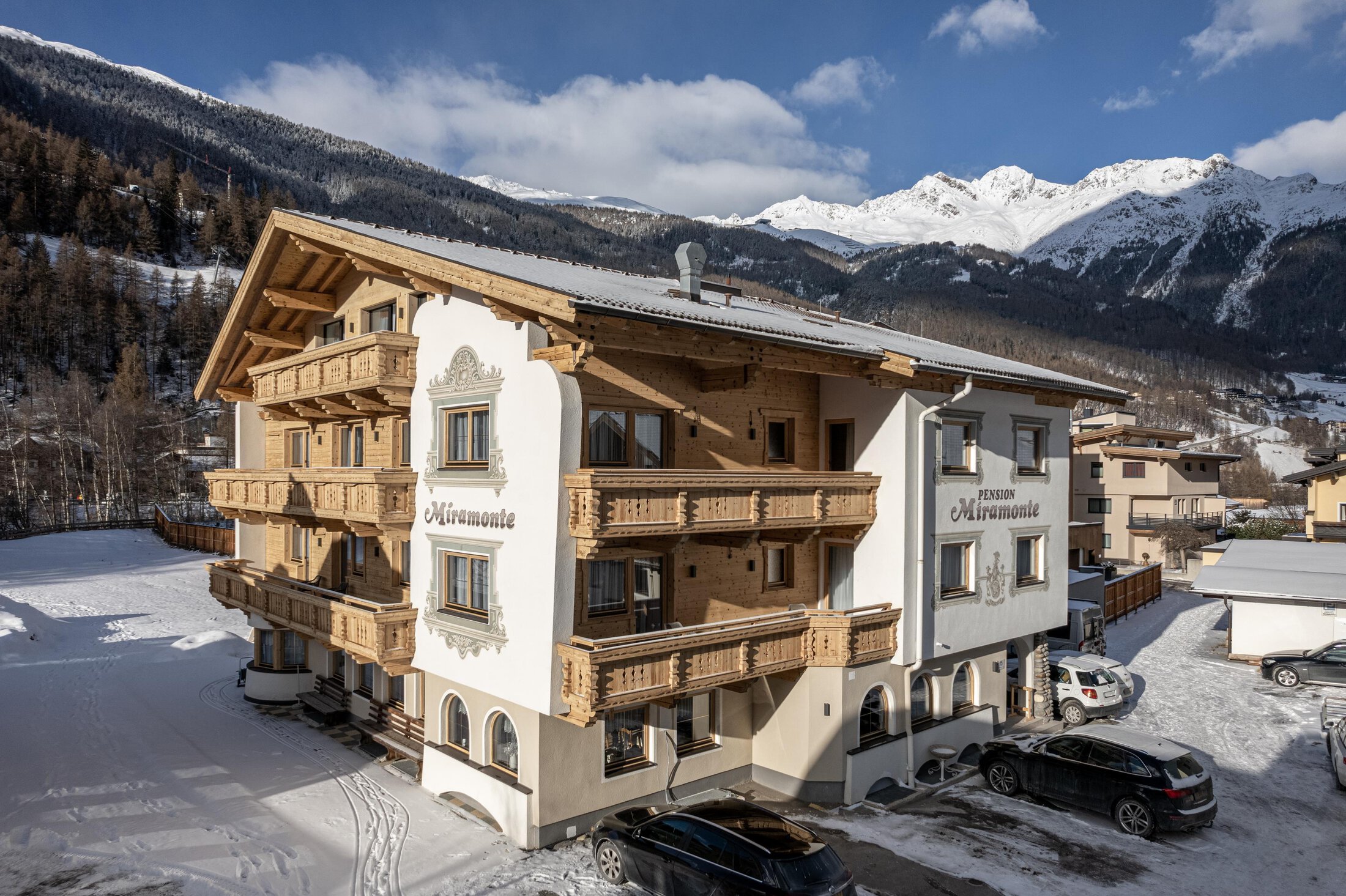 Unsere gemütliche und familiengeführte Pension Miramonte befindet sich in bester Lage, ca. 200 Meter von der Gaislachkogelbahn entfernt. Sehr ruhig und trotzdem Zentrumsnah. All unsere Zimmer und Appartements wurden renoviert und erstrahlen im neuen, modernen, alpinen Glanz. Im Winter lädt unser neuer Wellnessbereich mit duftender Zirbensauna, aromatischem Dampfbad, Vitalbar und gemütlichem Ruheraum zum Entspannen ein, genau das richtige nach einem herrlichen Skitag.