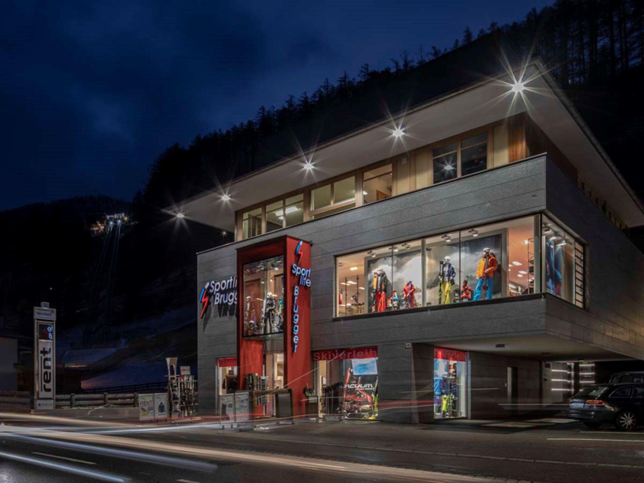 Sportlife Brugger in Sölden - Flagship store You will find everything that an athlete can desire in the 4 Sport Brugger Shops. Ski clothing, leasure fashions, summer and winter fashions – by all top designers. And what’s more, you can find the best ski rental and bike rental in Sölden as well as the best ski and bike service provided by our highly qualified employees.