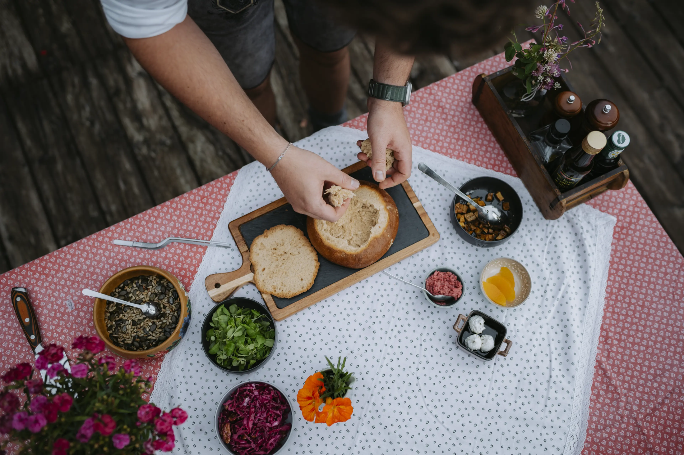 No bread, no fun: The great importance of this staple food in Ötztal is demonstrated by the historic bread ovens, for example in Längenfeld near the local history museum, or the mills in Piburg and Gurgl. Together with the Gstrein bakery in Sölden, the Marias Alm has dedicated itself to this theme. Maria, the namesake and heart of the hut, has been running the hut in a panoramic location together with her husband and chef Fabian since 2021.
