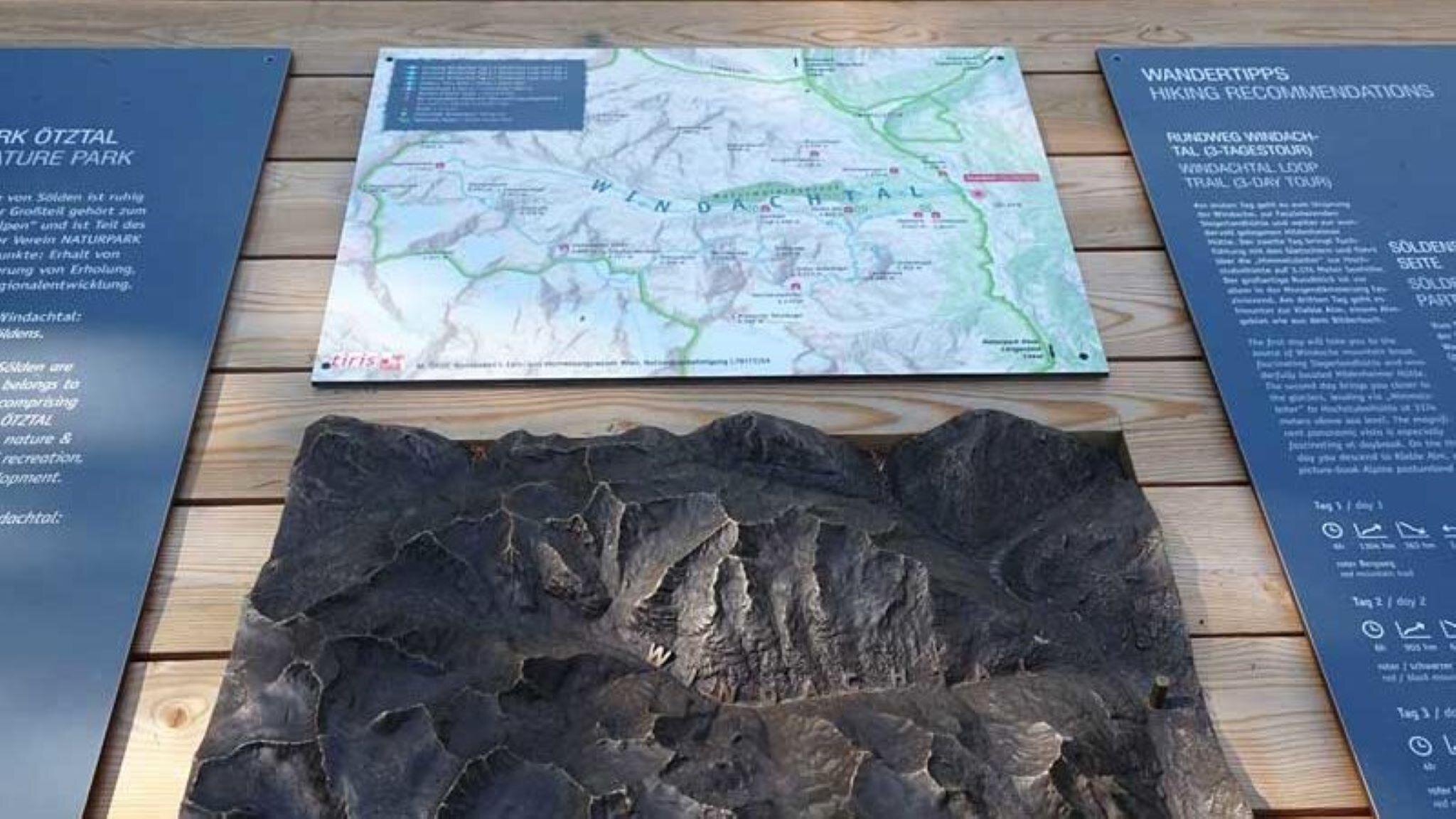 LIVING SPACE WINDACHTAL: Along the Ötztaler Ache, between the Gaislachkoglbahn and the Freizeit Arena, lies the Sölden Adventure Mile. One of its five sections is dedicated to the "quiet side of Sölden"—the living space of Windachtal. Its still-pristine wild forests and rugged rock faces inspire countless stories. Scan the QR code to listen to these tales or to find hiking tips for Windachtal. At audio stations, the calls of selected birds can be heard, and interactive elements provide a deeper experience.