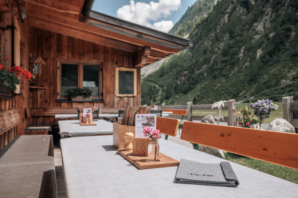 The Polles Alm is located at an altitude of 1.782m and is easily accessible in approx. 2 hours starting at the football ground in Huben. The first path leads through the „Ötztaler Sagenweg“ to the Feuerstein hut and further on an old very beautiful hiking trail up to the Polles hut.