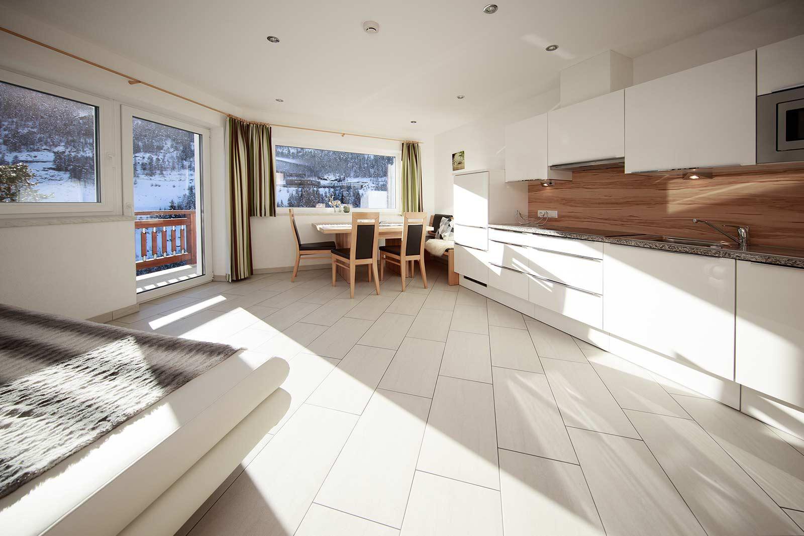Comfortably equipped apartment house in quiet and panoramic location. Entrance area with sofa and open fire place. Gaislachkogel mountain gondola and sport shops/ski school 1200 m, village center 1500 m, skibus stop 100 m, food shop (via suspension bridge) 7 walking minutes. Mountain bike and hiking trails on your doorstep! Children's playground.