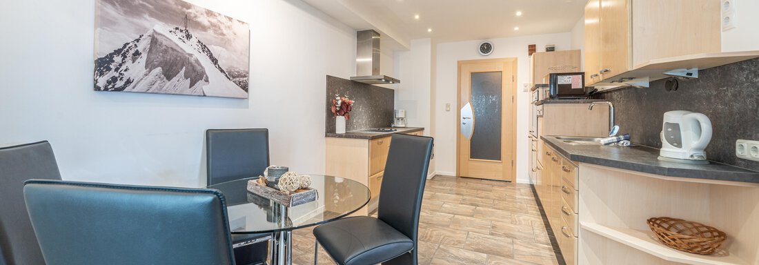 Our quiet apartment building is ideally located for active holidaymakers. The bus stop and restaurant are 200 m away, and the supermarket is 400 m from the house. The Gaislachkogelbahn and sports shops are about 800 m away (2-3 minutes by car). The road to the glacier skiing area is right nearby, and it's about a 10-minute walk to the town center. The 100m² wellness area with sauna, steam bath, infrared cabin, relaxation room, and solarium invites you to relax.