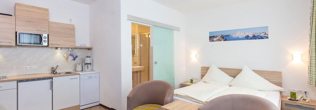 Family-run apartment house in the quiet village of Vent at the end of the of the Ötztal valley. Breakfast products (bread, homemade and farm products) for your individual breakfast in your apartment on demand. Comfortably equipped apartments for 2-5 persons (studio-, comfort- and family-apartment) with all modern amenities, furnished with love to the detail. Splendid panoramic location!
