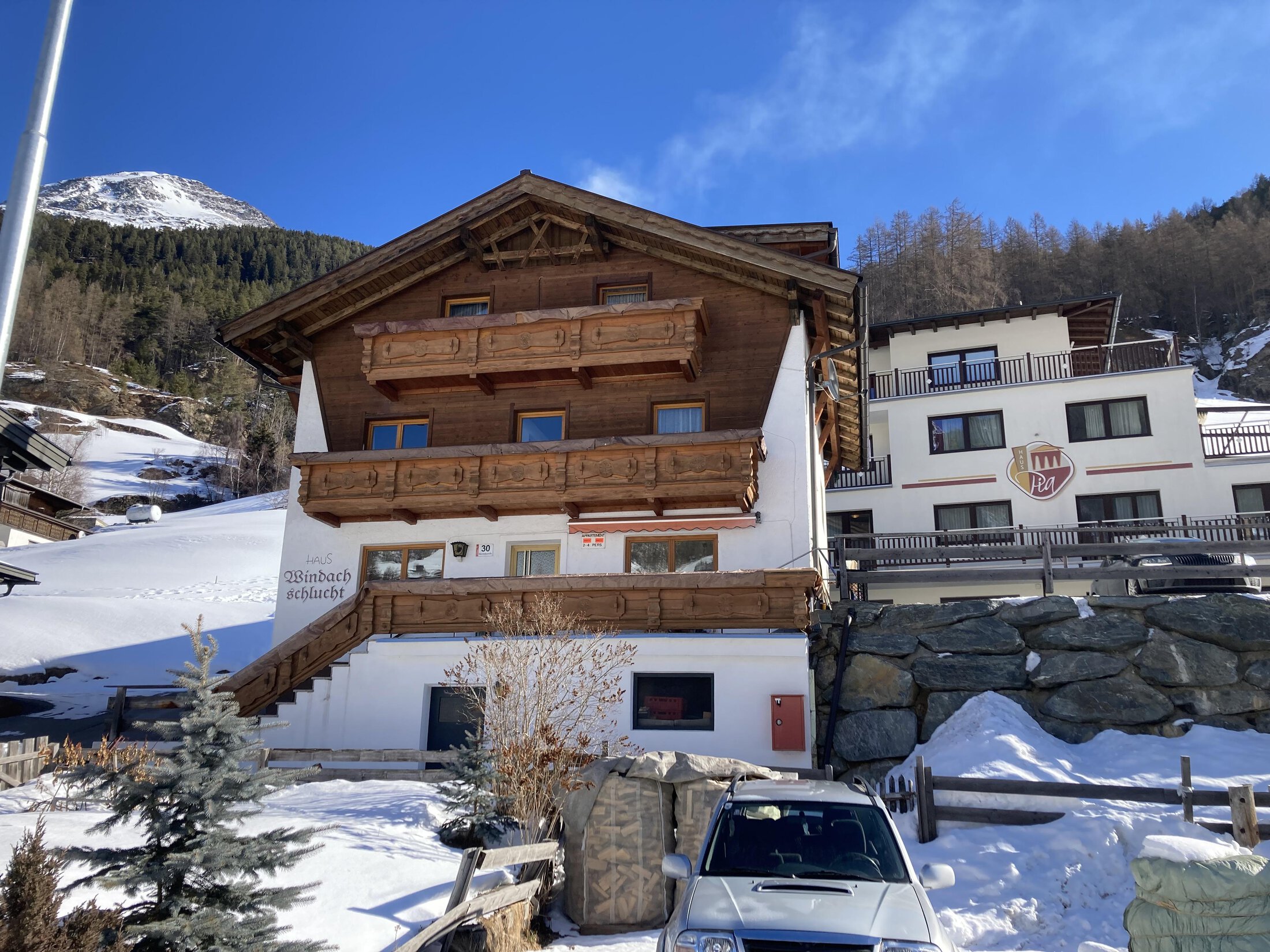 Arrival: drive in the direction of Gaislachkoglbahn - turn left at the Gaislachkoglbahn after the sports store "Sporthütte Fiegl". Follow the signs for Camping. Turn left after the bridge. Drive along Oberwindaustraße for about 350 m. Our apartments are located in the house Windachschlucht, which is on the right side.