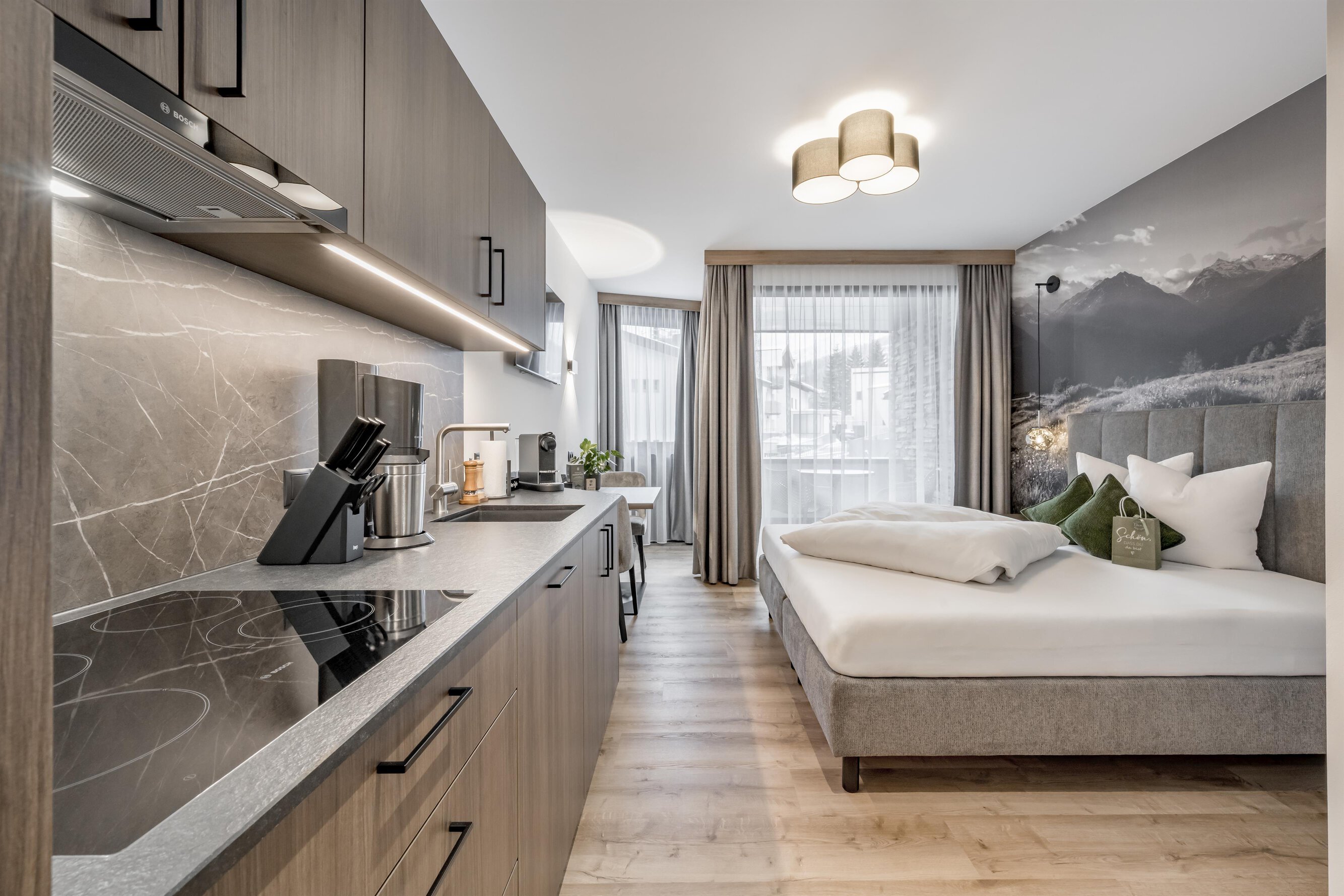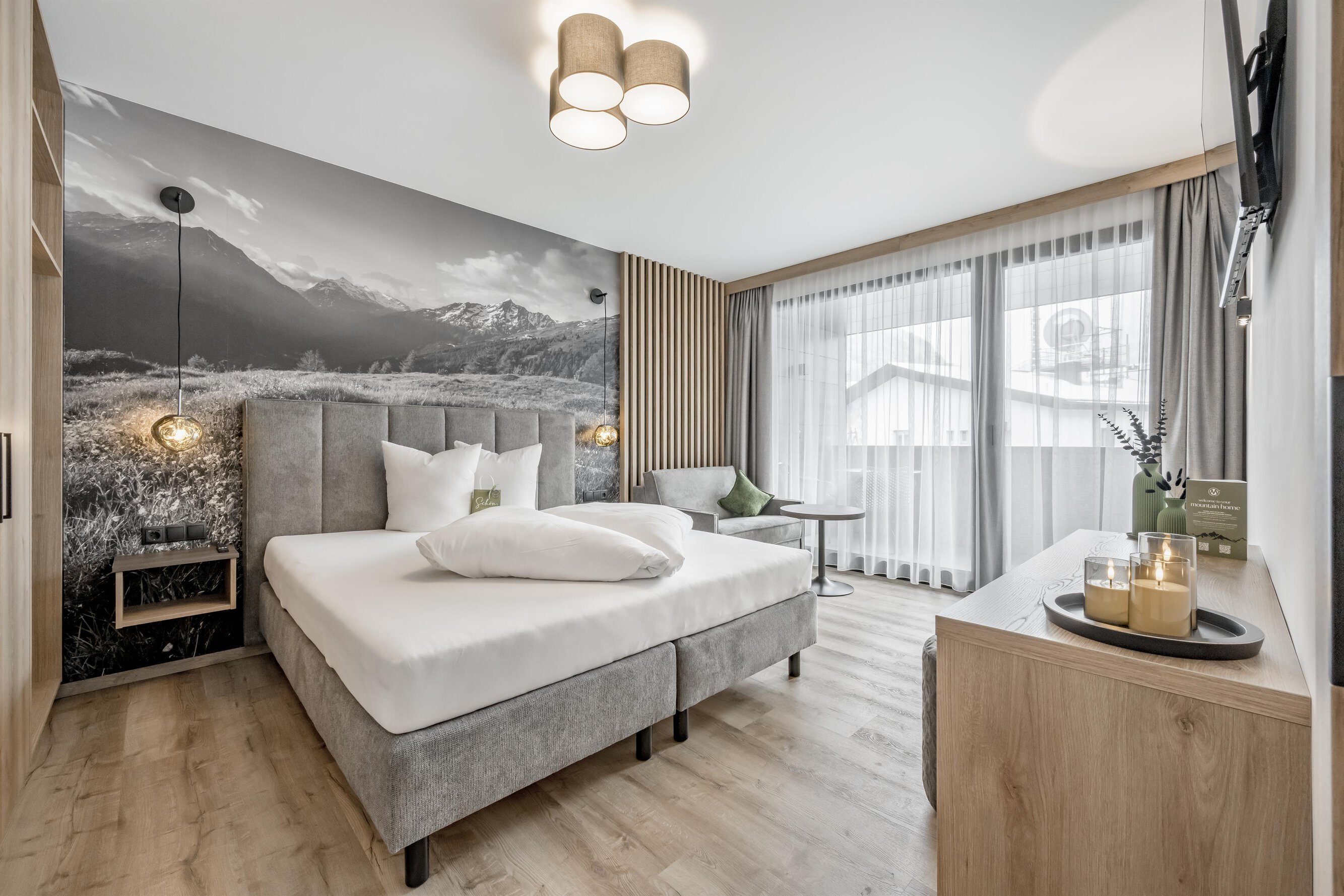 The tranquility of the mountains & alpine luxury – and you right in the middle.Refined living with exclusive design and Tyrolean lifestyle. Central and just few minutes from the Giggijochbahn. Put your feet up on the comfortable couch and enjoy the view of the mountains through the elegant panoramic window. Luxurious bedrooms and a sauna in the house pamper you after an epic day on the slopes. THE special vacation apartment in Sölden - Marco's Mountain Home.