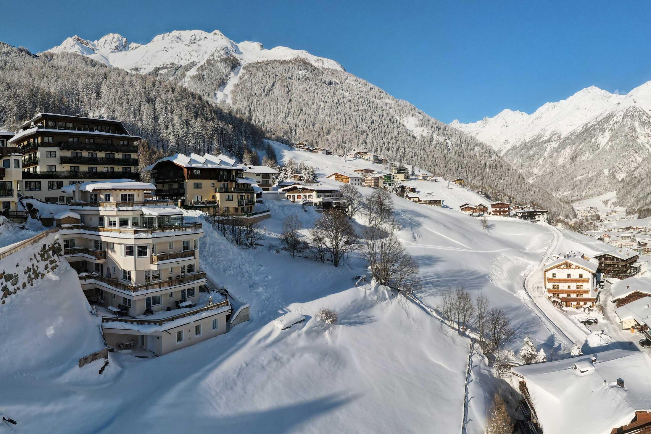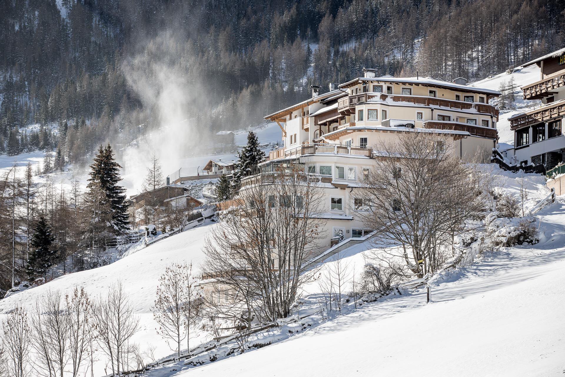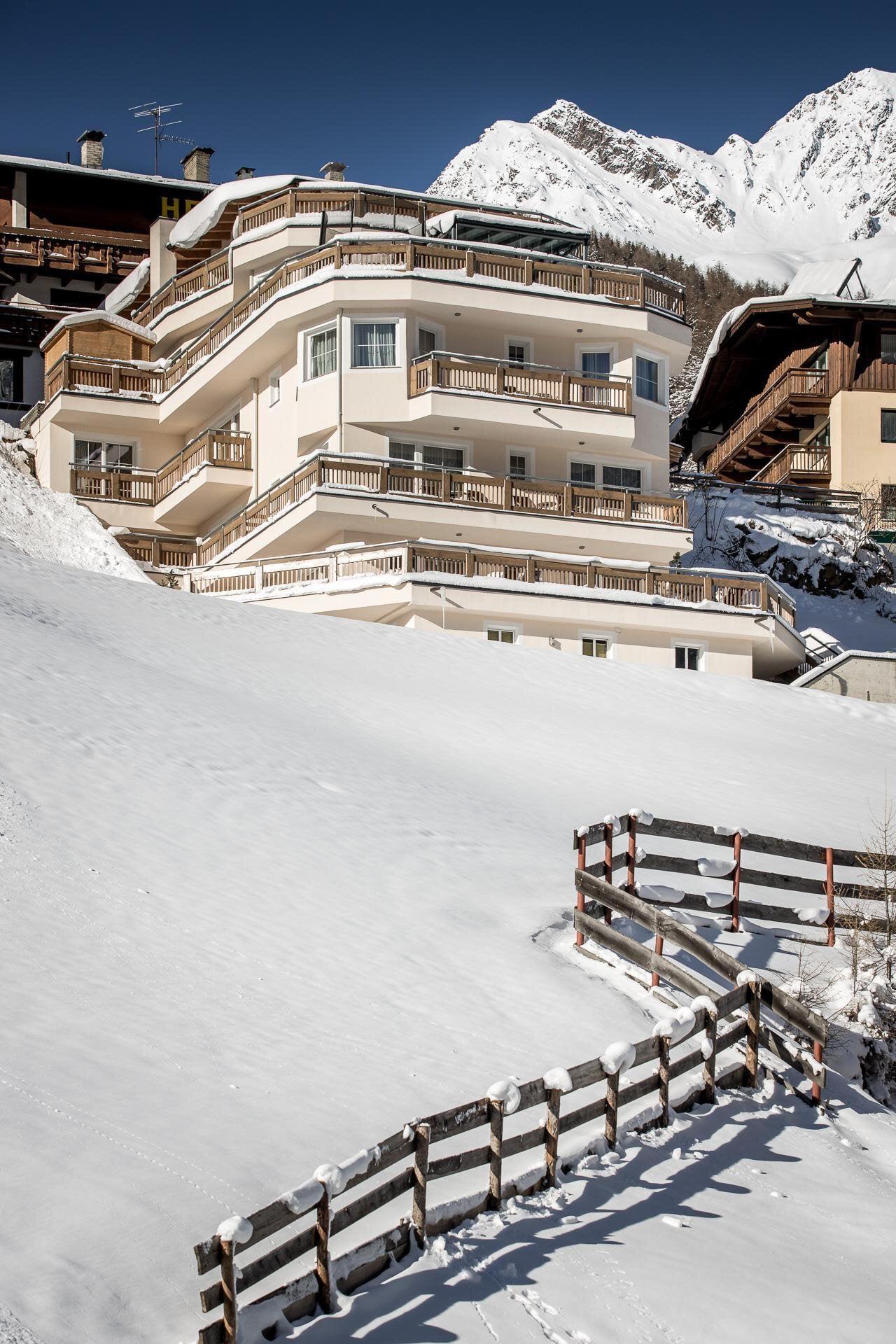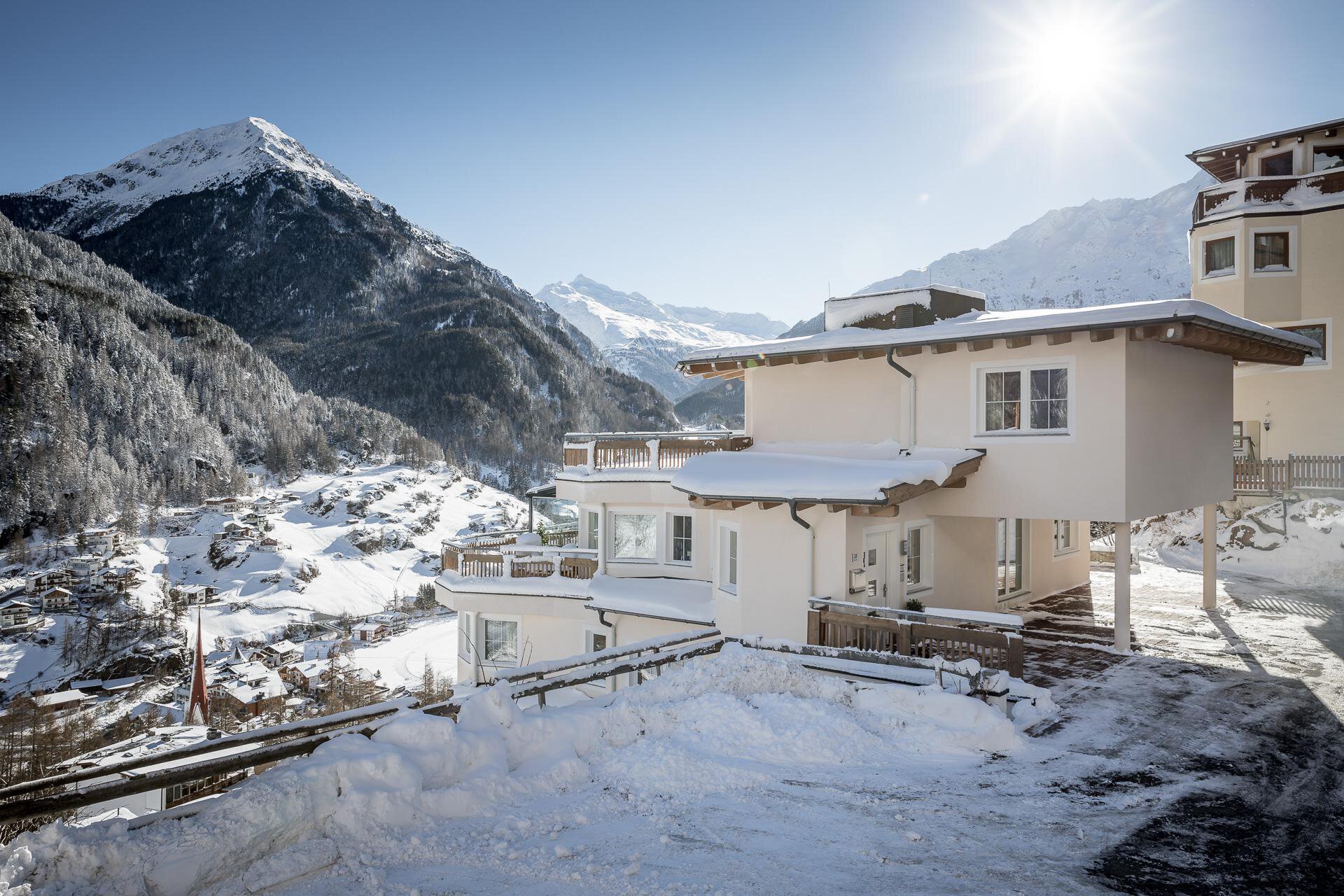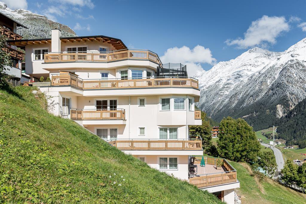 Located just above the town center (about a 8-minute walk), our new apartment building offers a magnificent view over Sölden and its breathtaking mountain backdrop. Spacious apartments, furnished with great attention to detail, ensure a relaxing and enjoyable holiday (elevator in the building).