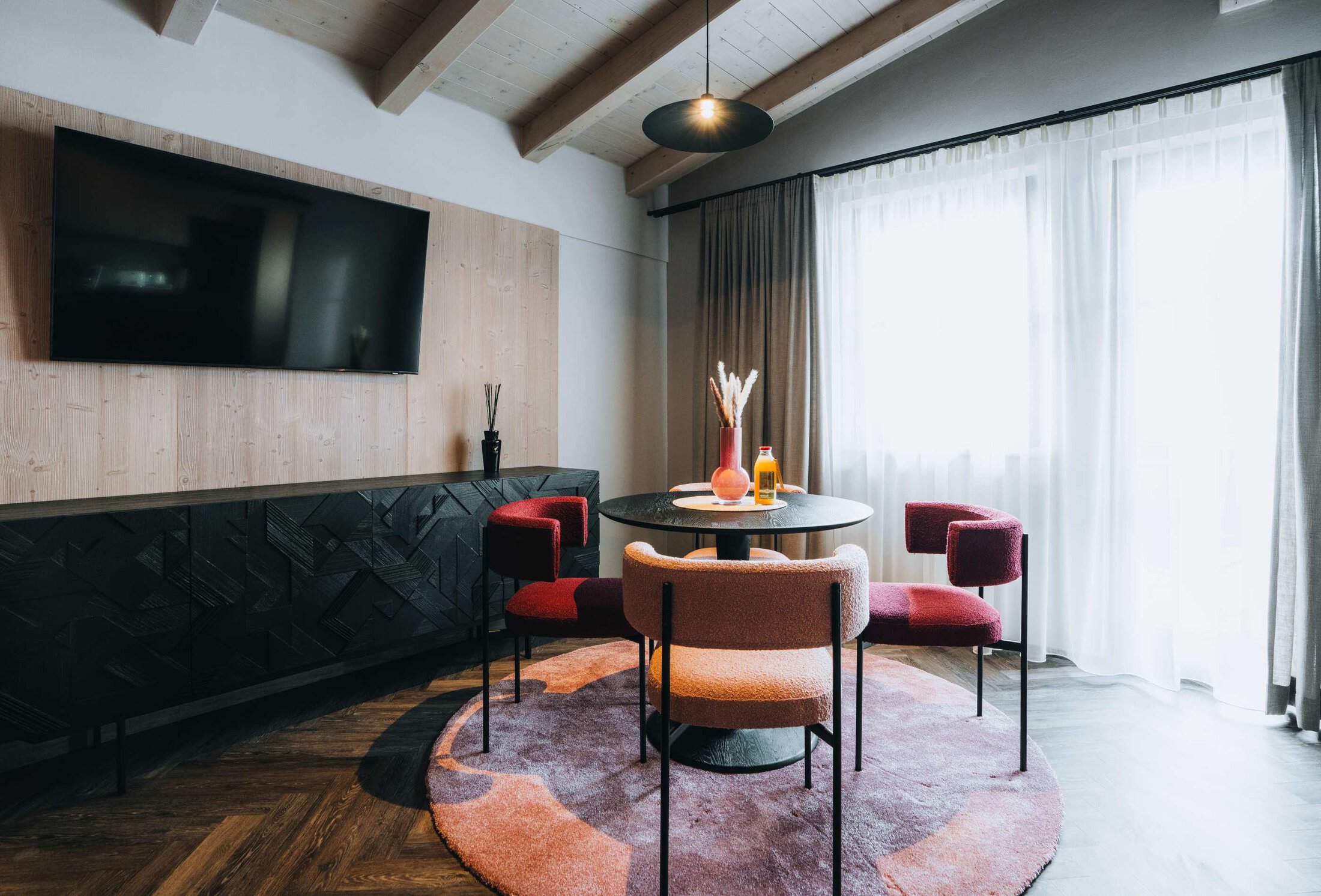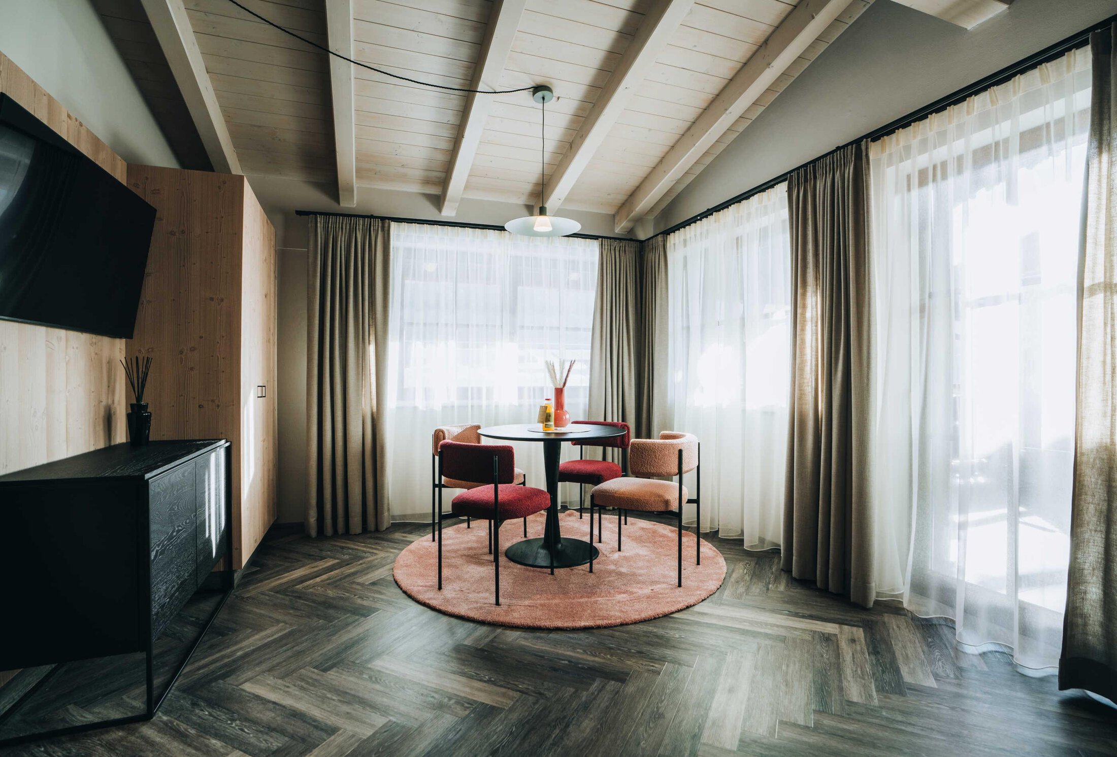 Seminars & meetings with a vision The working space for a maximum of 15 people with a wide view of the Panorama Alm Sölden.