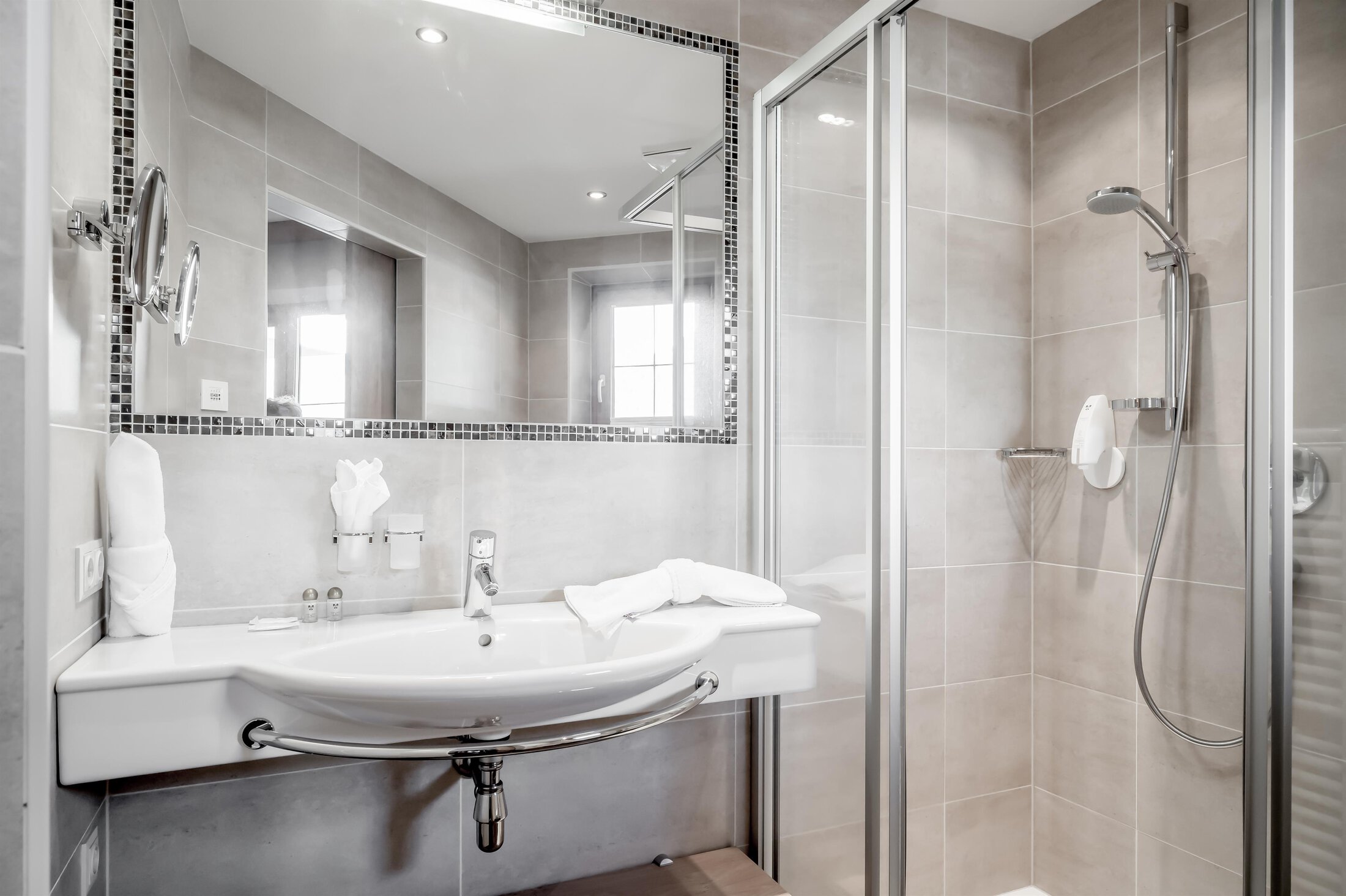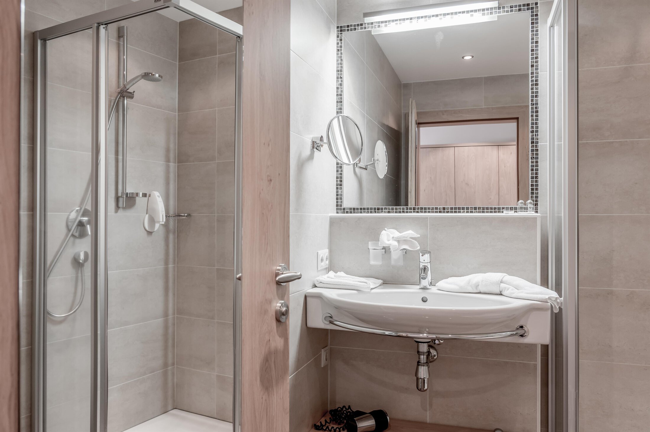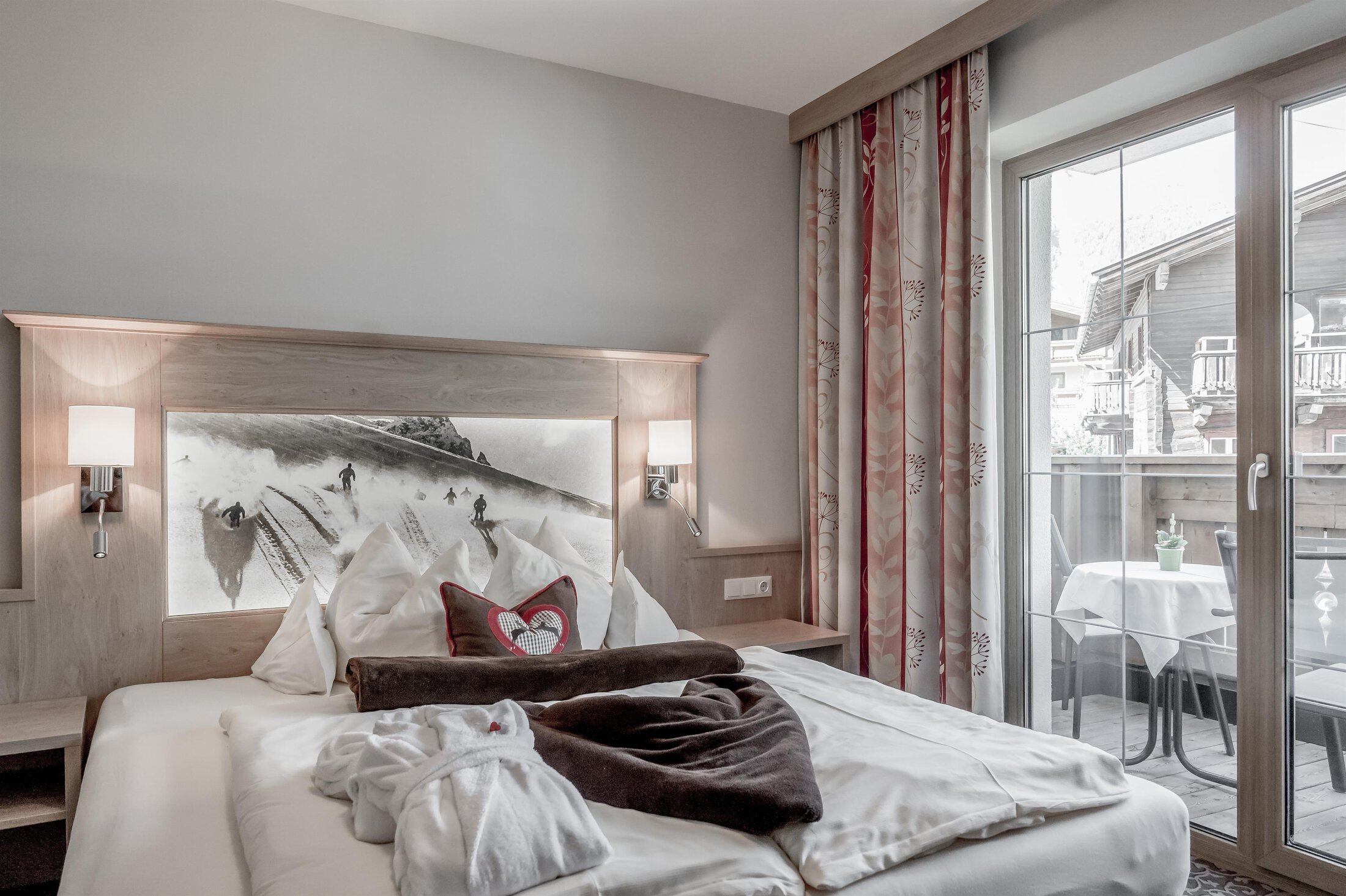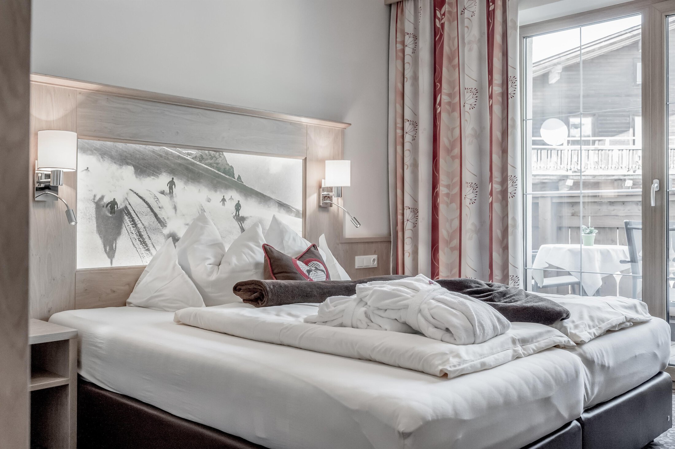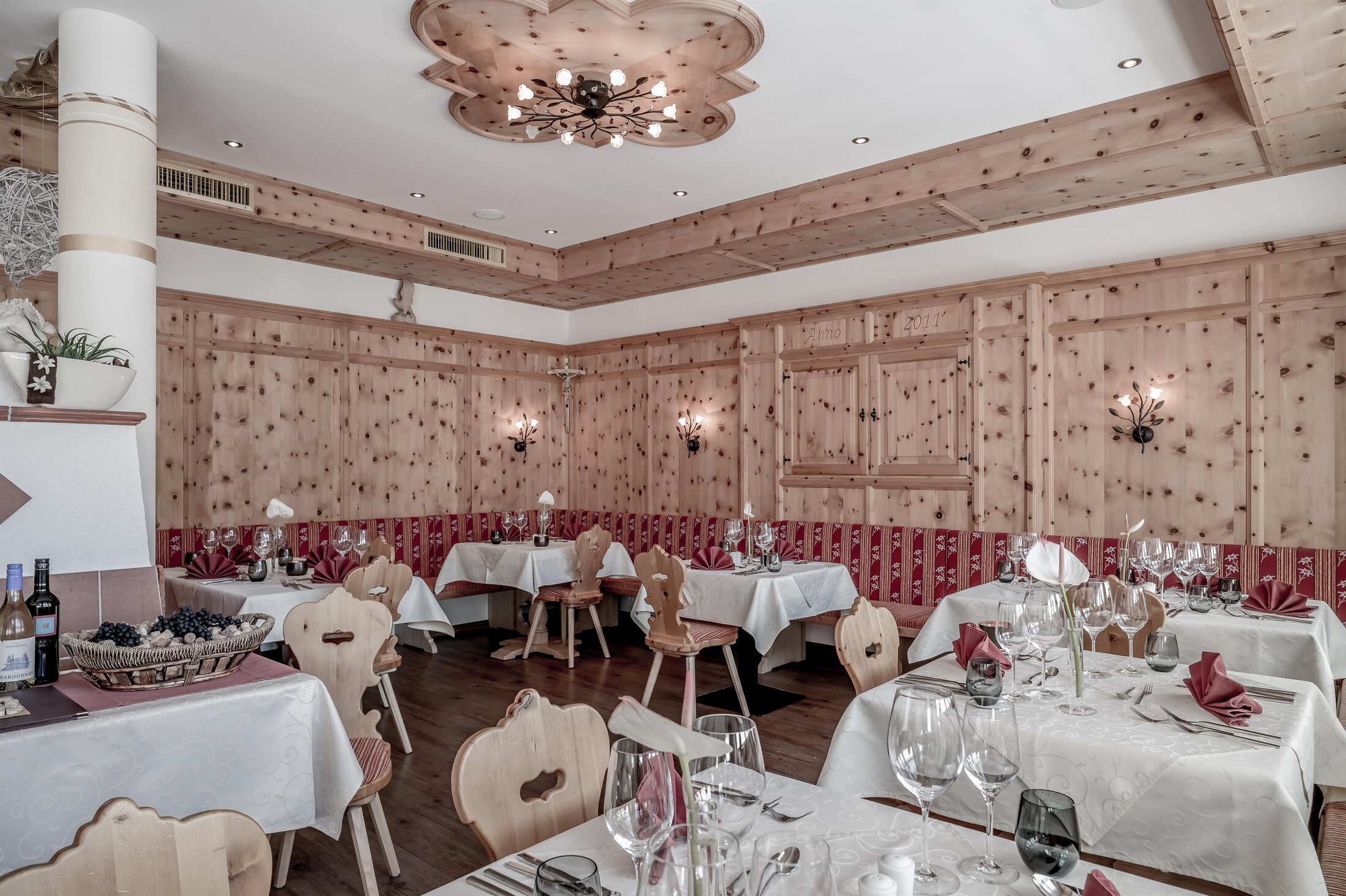 Included: wellness parlor with log cabin sauna, crystal steam bath, infrared cabin/photo therapy, Kneipp footbath, heat bench, power showers, relaxation zone with water beds and indoor pool; sauna towels/hand towels, bathrobe, parking lot, ski storage room with boot dryer, high speed WiFi;
