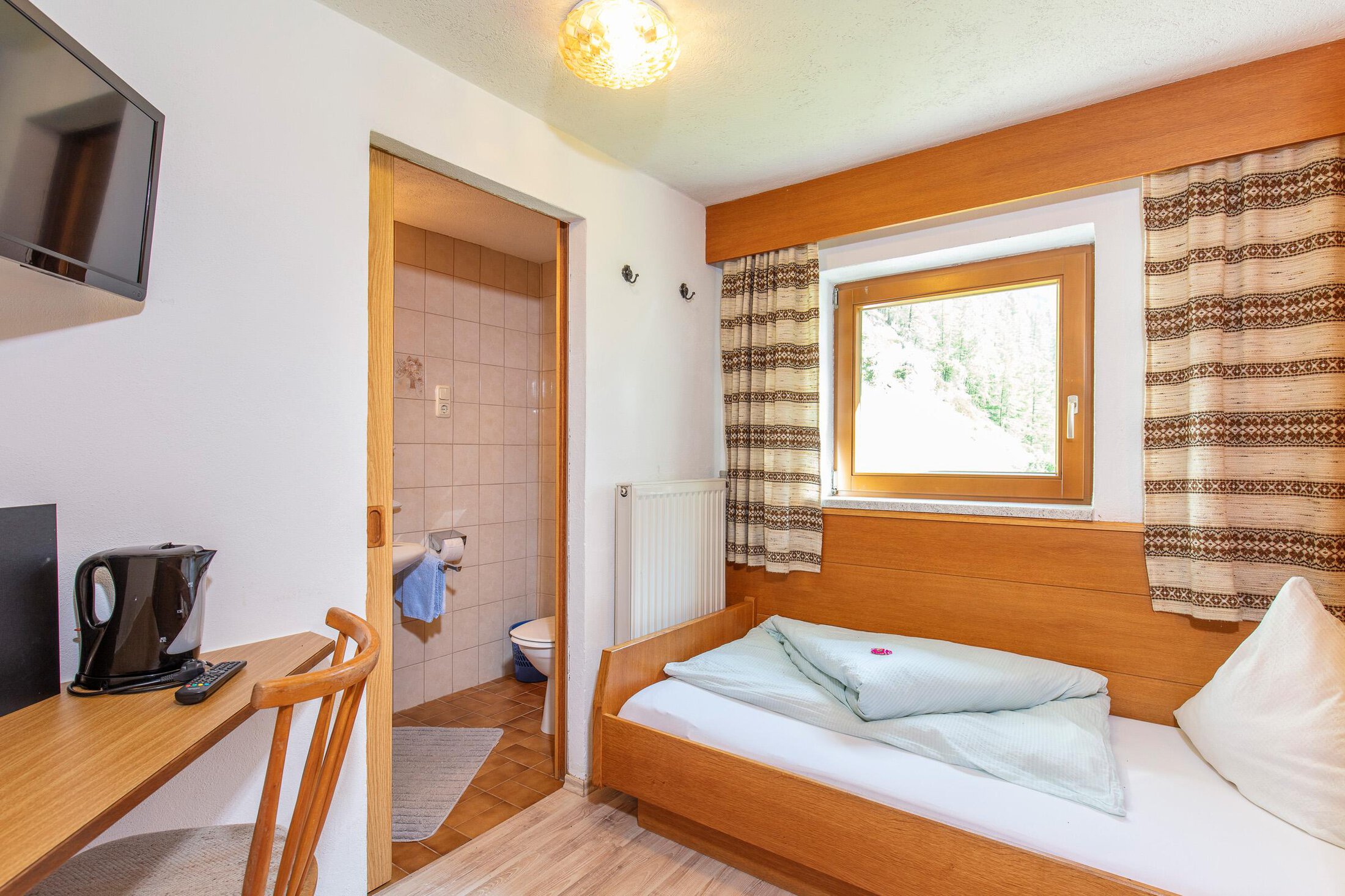 Homey B&B in typical Tirolean style: quiet location, rich breakfast buffet, common lounge with cable TV. Only 8 walking minutes from the village center (dining, shopping, partying). Winter: bus stop at 100m (10 min intervals), free skibus shuttles take you to the mountain lift terminals!