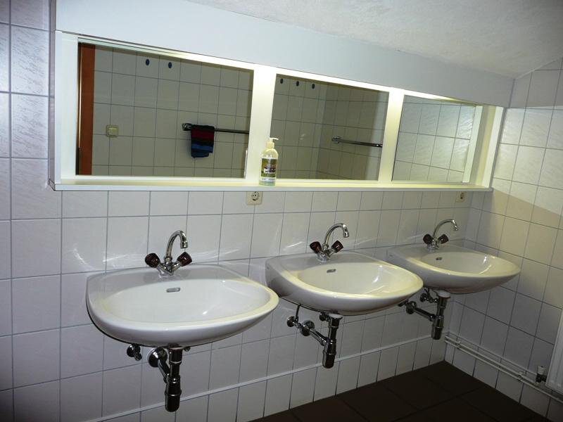 coin-operated shower in the dormitory € 1 for 3.5 minutes